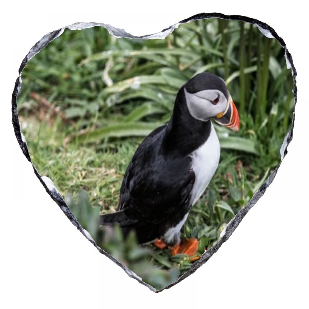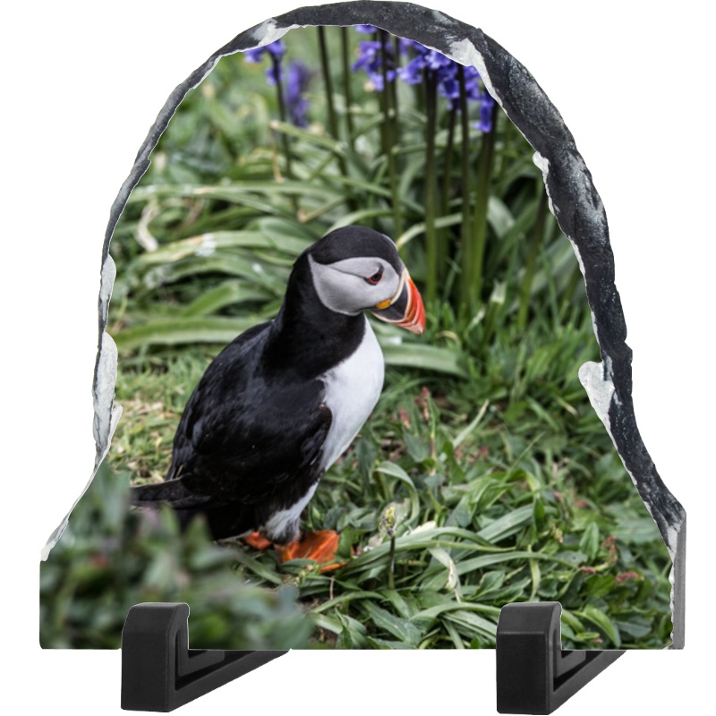 Puffin photographed and printed by Eoghain Maclean Photography. Printed on a gloss rock slate. Boxed complet with stand.